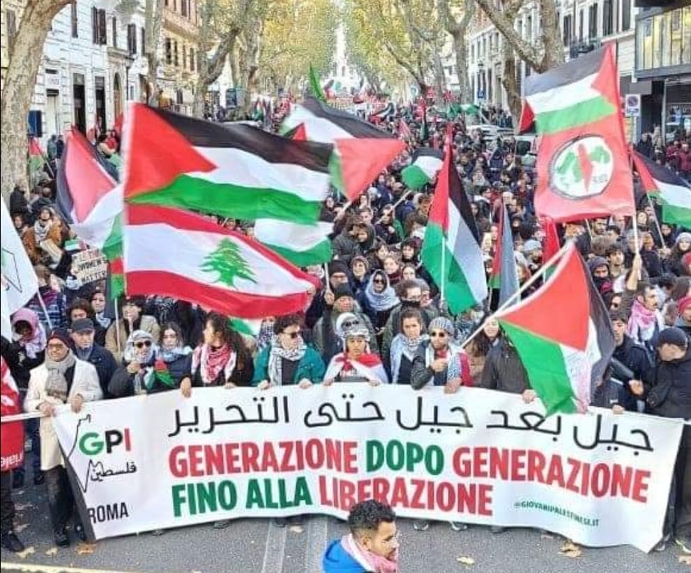 Per quanto la Repubblica e i mass media forse più sionistizzati di Europa l’abbiano cancellata o ne abbiamo parlato attraverso le veline della questura (v. Il Messaggero), la manifestazione di ieri a Roma è pienamente riuscita. Non era scontato, perché in tutto il mondo occidentale, e anche in Italia che ne è stata finora il fanalino di coda, la mobilitazione a sostegno del popolo e della resistenza palestinese è in riflusso. Ma anche perché fino all’ultimo si sono protratte le polemiche sulla manifestazione unica o sulle due manifestazioni.