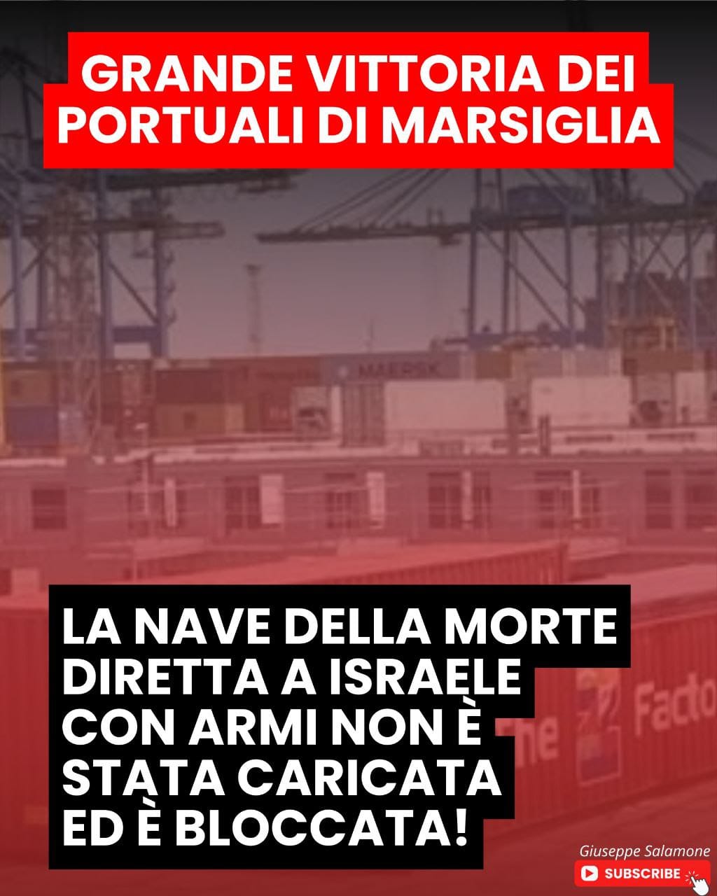 Seppure con il ritardo e l’insufficienza di cui abbiamo parlato più volte, i lavoratori europei battono un altro piccolo colpo a sostegno del popolo palestinese e della sua resistenza alla macchina di morte sionista. “Noi non saremo complici del genocidio” hanno detto – con i fatti – i portuali della CGT di Marsiglia, e si sono rifiutati di caricare tre contenitori di armi per Israele, contenenti mitragliatrici e munizioni. Solidarietà reale, non meramente simbolica (che talvolta il tam-tam dei social ingannevolmente mostra come reale).