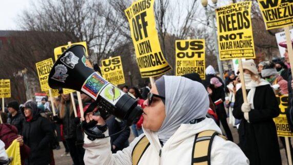 In seguito ai bombardamenti sulla costa venezuelana e all’operazione militare statunitense per il rapimento di Nicolás Maduro, e dopo la conferenza stampa in cui Donald Trump si è arrogato il potere di governare il Venezuela per consentire alle compagnie petrolifere statunitensi di saccheggiarne gli idrocarburi, migliaia e migliaia di persone sono scese in piazza per esprimere la propria indignazione e chiedere il ritiro degli Stati Uniti dalla regione.