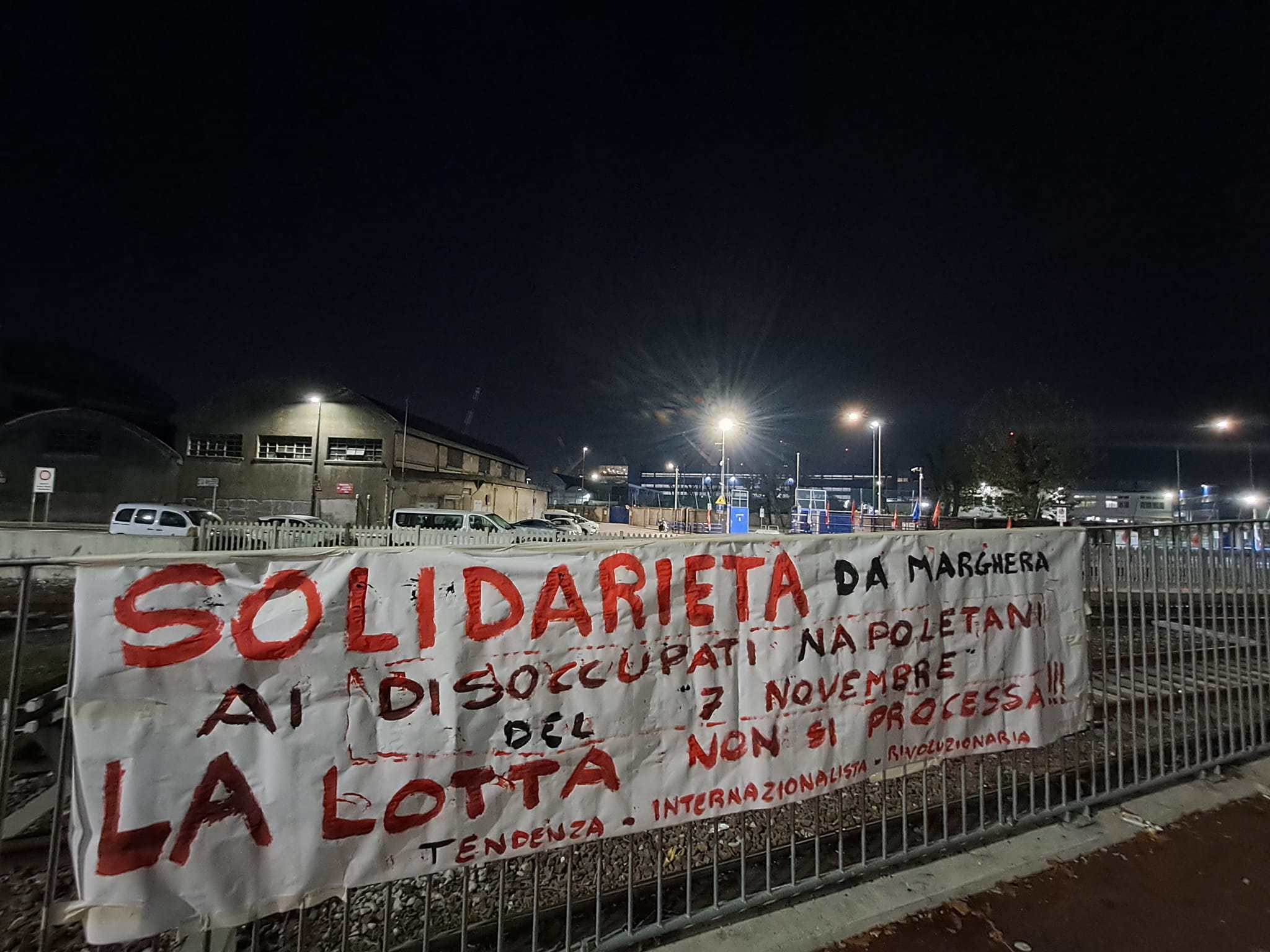 Stamane [28 ottobre], nel pieno di un lunedì lavorativo, più di mille proletari occupati e disoccupati, studenti e solidali hanno riempito il corteo che da piazza Nazionale si è diretto verso l’aula Bunker ed il carcere di Poggioreale in concomitanza con l’udienza preliminare del maxi-processo a carico di 43 compagni/e dei due movimenti di lotta […]